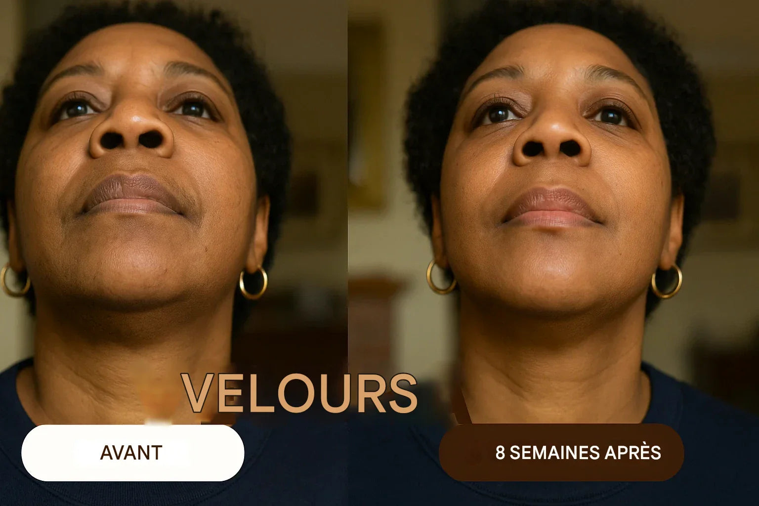Après : peau nette, lisse, lumineuse.